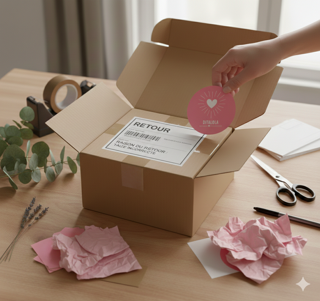 Vous avez changé d'avis ? Chez DITALOLA, vous disposez d'un délai de 14 jours après réception de votre commande pour effectuer un retour.